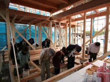 構造の検査、中間検査です。検査機構のかたと、作人の加藤さんです